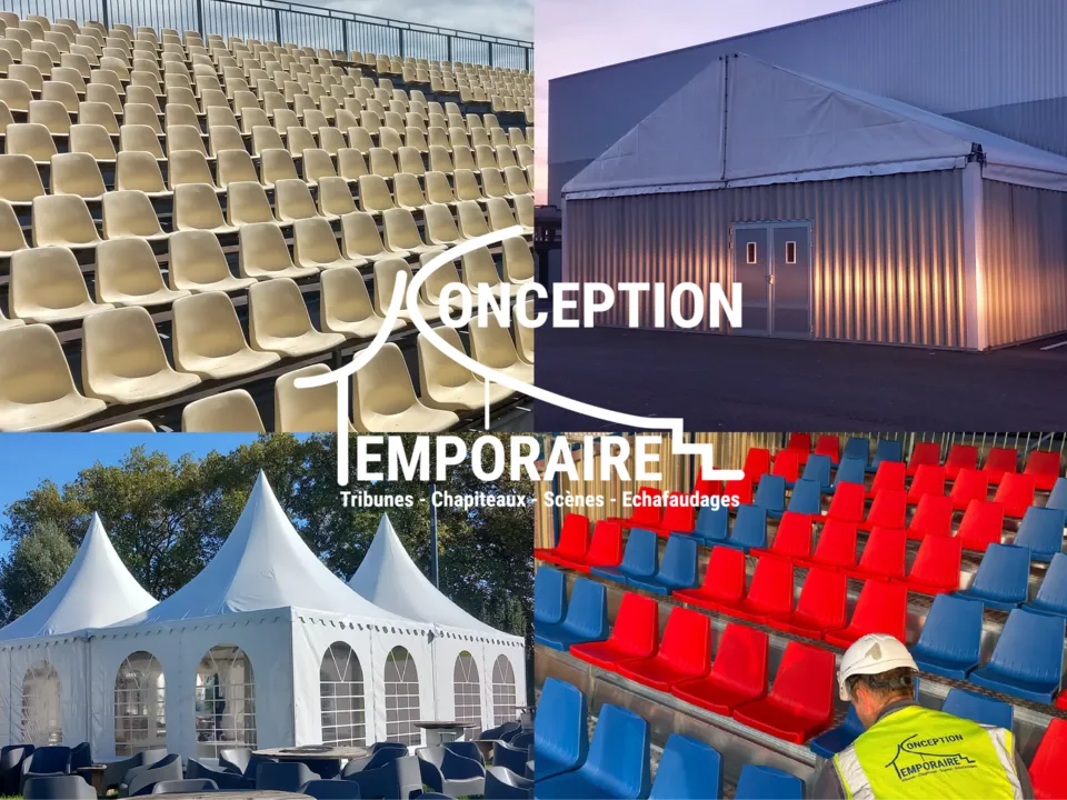 Location de tribunes démontables, gradins et structures événementielles – Votre expert en Auvergne Rhône-Alpes, Bourgogne Franche-Comté, Lyon, Mâcon, Bourg-en-Bresse et Villefranche-sur-Saône: Avec plus de 20 ans d’expérience dans la location de tribunes démontables, de gradins et de chapiteaux, Conception Temporaire propose des structures temporaires à la location pour spectacles (son et lumière, festivals, concerts), événements sportifs (compétitions de boules, compétitions de gymnastique),