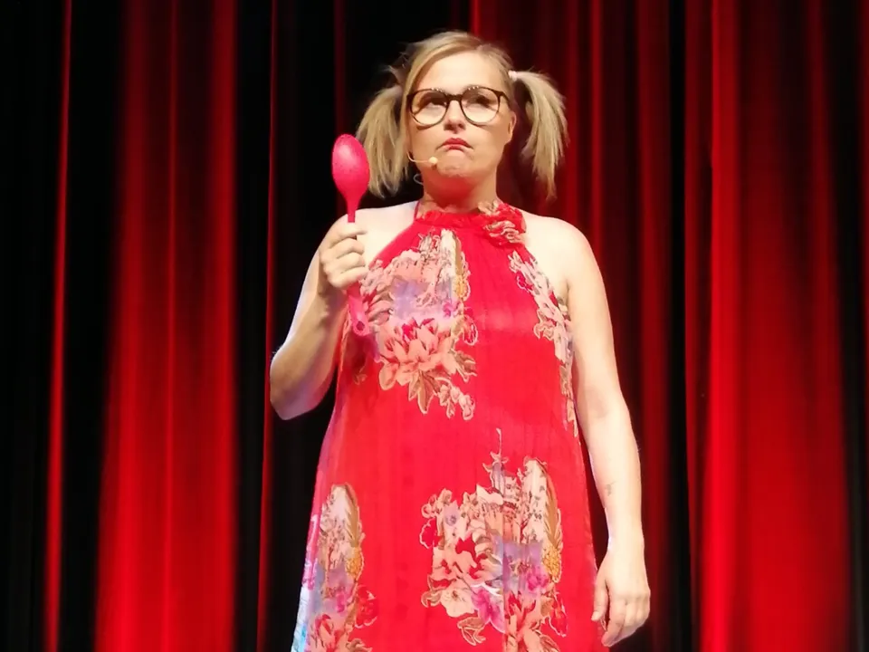 Virginie raconte avec autodérision et humour, ses années à essayer de s'aimer , de s'accepter ... entre "Dame Ginette" sa balance - sa fidèle partenaire - ... Les régimes, les réseaux sociaux, la Société ... et tant d'autres ! Elle invite toutes les personnes présentent dans la salle à s'aimer, à s'accepter ! Une façon drôle et remplit d'Amour de dire au monde "Aimons-nous bordel de merde"