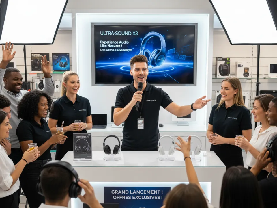 ) Du 2 en 1 : pour vous une nouvelle animation et un support publicitaire attractif et durable, et pour vos invités une expérience technologique et festive qui développe leur curiosité et fait parler de votre événement tout autour d'eux.
