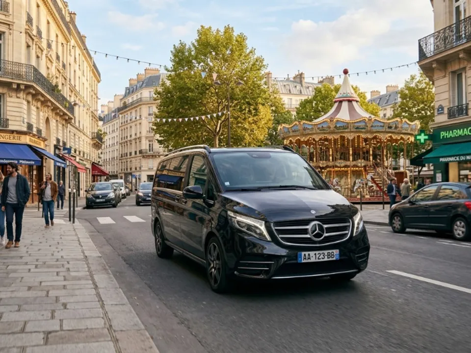 Une Mercedes Vito est à votre disposition à tout moment pour satisfaire tous vos besoins de mobilité dans la ville comme dans la région.