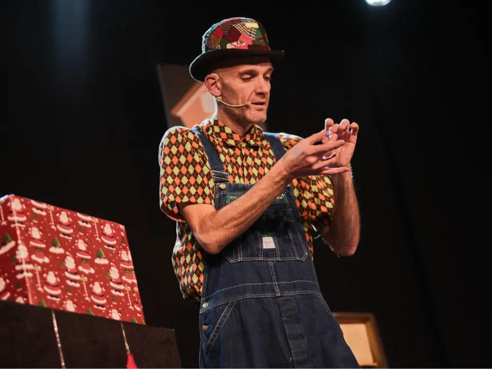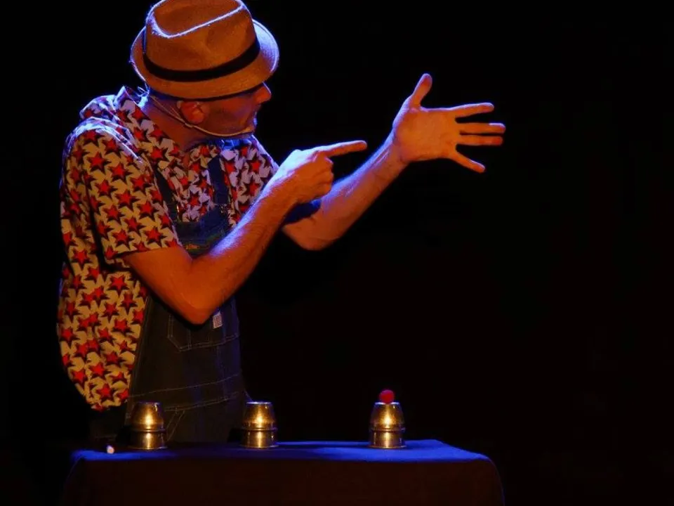 Depuis plus de 15 ans, cet éternel enfant qui semble enfermé dans un corps trop grand pour lui, enchaîne les tours de passe passe avec une maladresse touchante. Il est le premier surpris lorsque sortent de son chapeau lapins et nez de clown, et les fait ensuite disparaître sans trop savoir comment. Ce spectacle a déjà ravi des centaines d’adultes et d’enfants en France, en Angleterre, en Inde, en Suisse...
