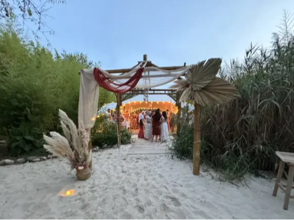 À seulement 25 minutes de Montpellier, L'Impensable réinvente l'art de la réception en créant une expérience unique : une plage de sable fin nichée au cœur du vignoble languedocien. Ce concept novateur mêle avec audace l'exotisme d'une oasis et l'authenticité du terroir viticole. L'espace de réception se compose d'une élégante tente nomade blanche de 150m², véritable prouesse architecturale mariée à la nature.
