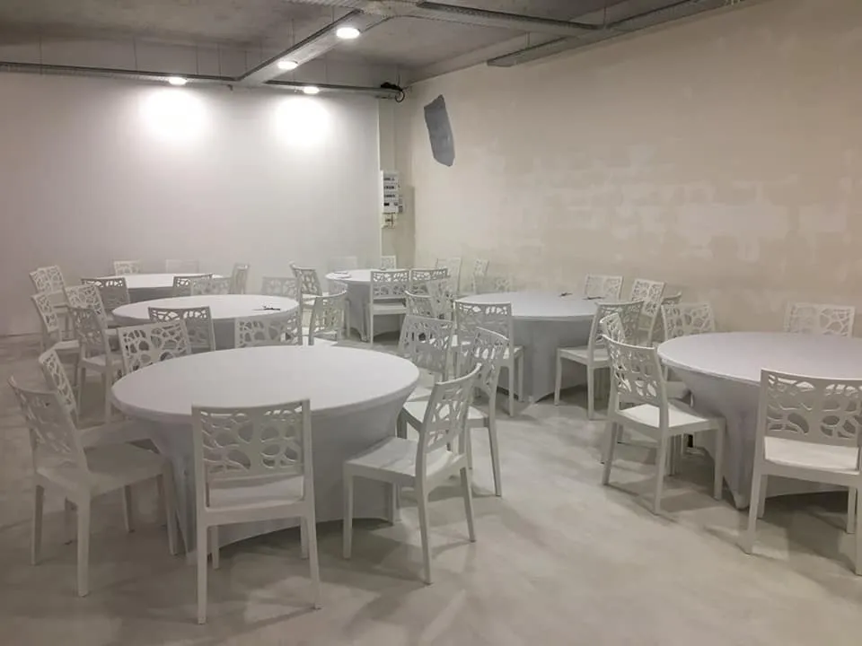 D'une superficie de 100 m2 vous permet de disposer d'une piste de danse et d'un salon pour votre repas, le tout climatisé chaud ou froid.