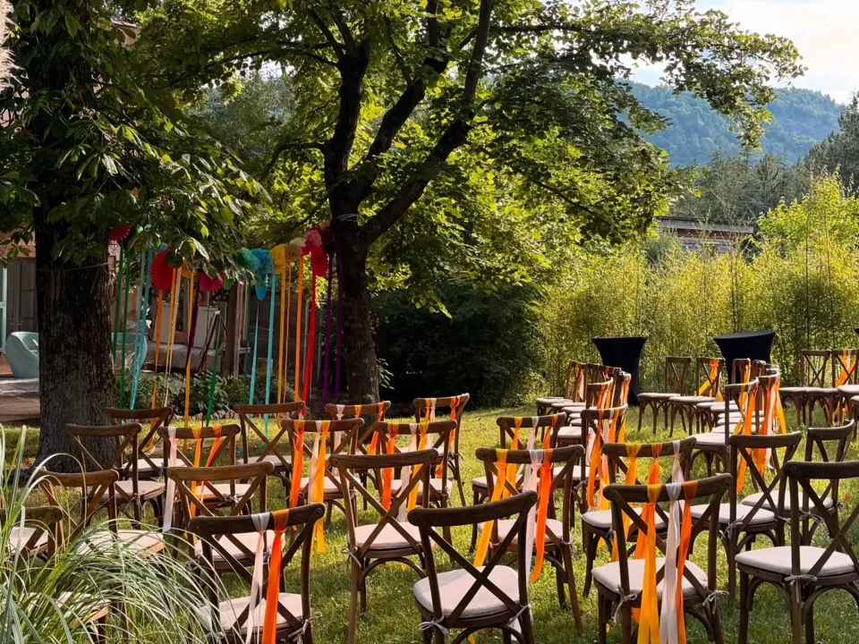 Une salle intérieure conviviale, des terrasses ensoleillées, des placettes pittoresques et une tonnelle romantique s'harmonisent parfaitement pour accueillir 60 à 80 convives. Pour les amateurs de danse sous les étoiles, une piste extérieure ajoute une touche magique à vos festivités.