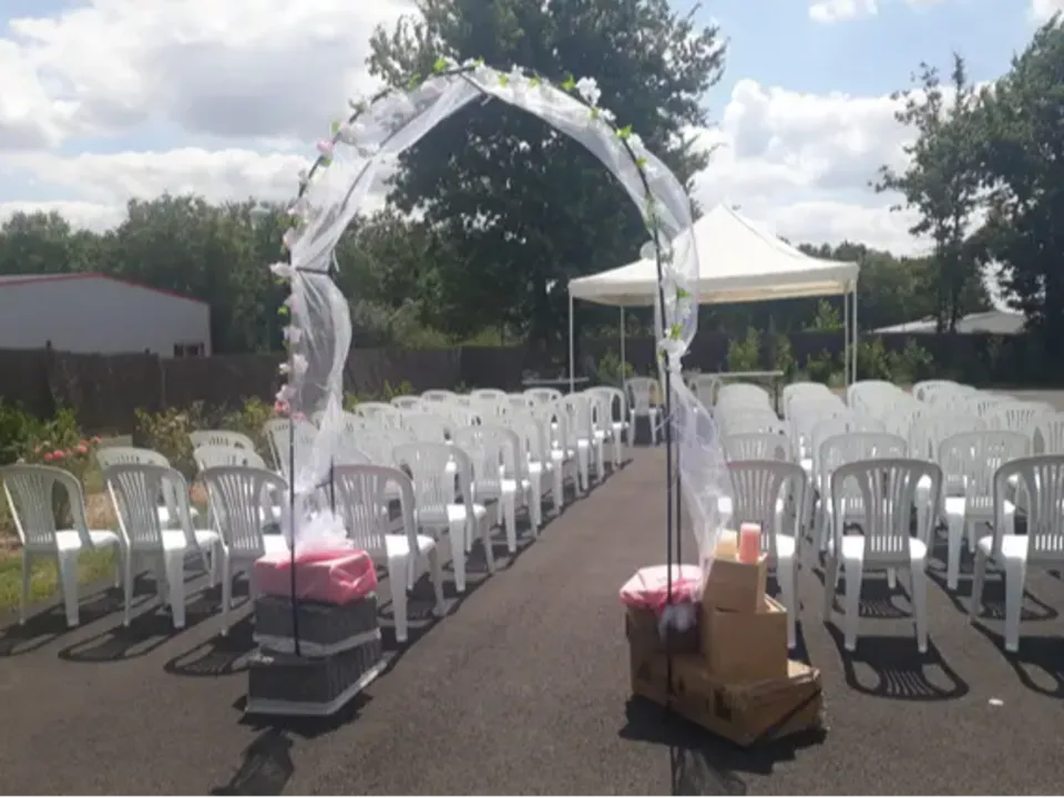 Pour faciliter l'organisation de votre événement, le lieu propose : Une cuisine professionnelle de 40 m² entièrement équipée Un mobilier complet incluant tables et chaises Des espaces modulables selon vos envies Les larges baies vitrées inondent l'espace de lumière naturelle, créant une ambiance unique pour votre cérémonie. L'architecture moderne du bâtiment s'harmonise parfaitement avec son environnement verdoyant, offrant de magnifiques opportunités pour vos photos de mariage.
