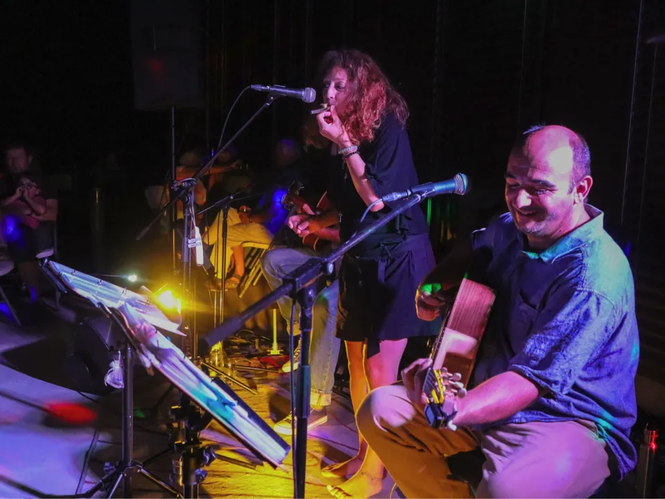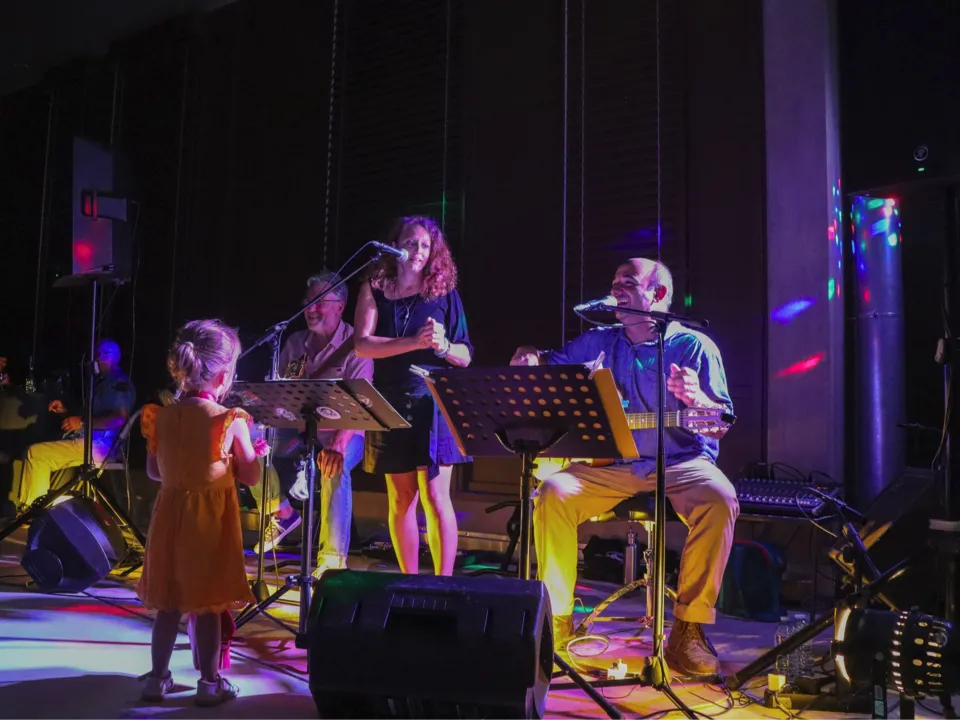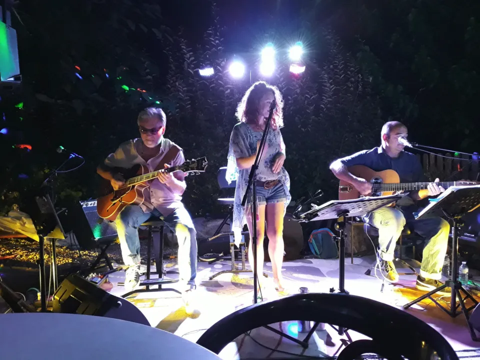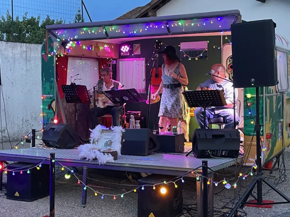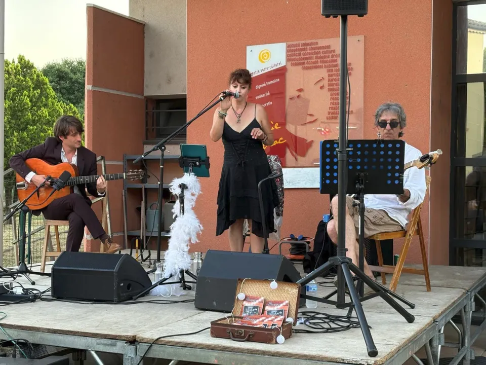 George Brassens, Léo Ferré ou Charles Trenet comme vous ne les avez encore jamais entendu ! La voix délicate de Rébecca, le phrasé guitare de Nicolas, la Contrebasse swing de Manon et les envolées "guitaristiques" de Thierry apportent une interprétation tantôt douce, tantôt festive à ce répertoire mêlant joie de vivre et partage !