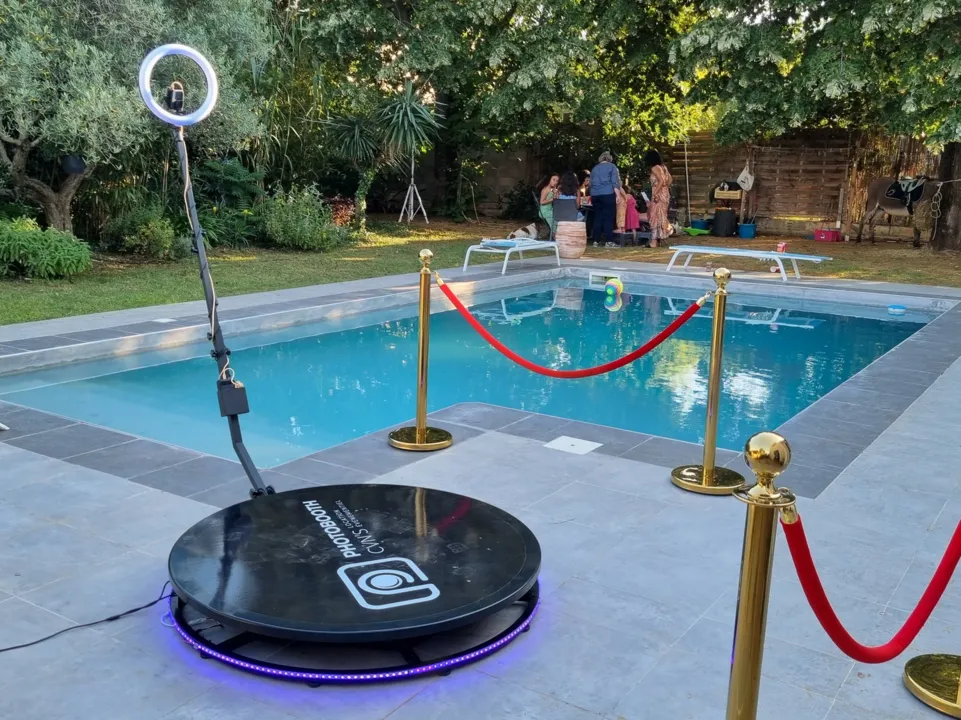animation est totalement personnalisable ! Grâce à l’interface logiciel et le matériel fournis, vous pouvez sélectionner vos effets 360°, vos arrière-plans, ajoutez votre logo, un produit, une marque, un événement… Vous avez carte blanche !Enfin, chaque rendu peut être immédiatement partagé sur vos réseaux-sociaux, téléphone et créer le buzz ! La livraison, l'installation et la reprise sont assurées par votre prestataire afin que vous puissiez profiter pleinement des festivités.