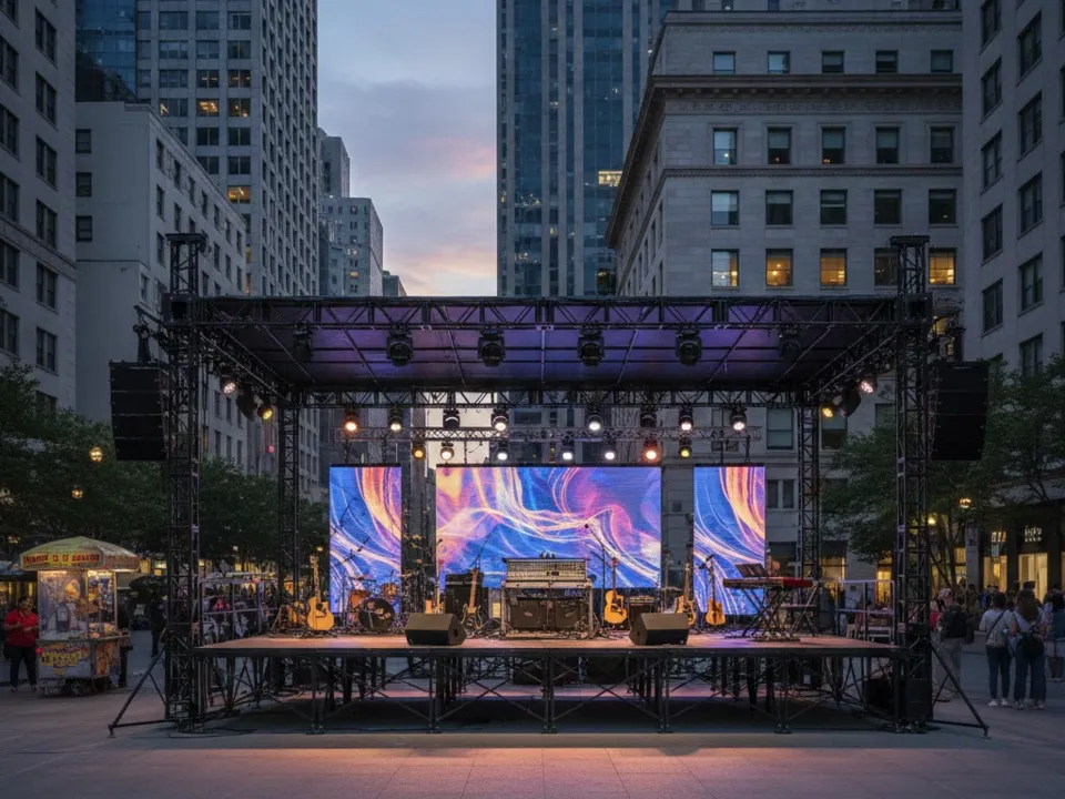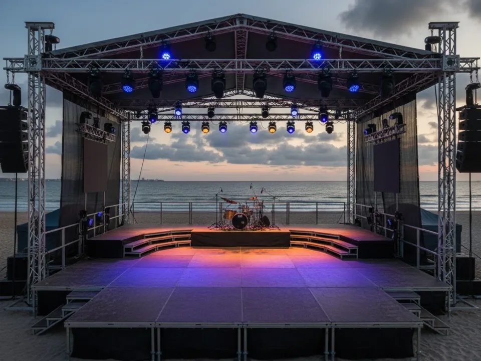 "podium évasion" spécialiste de la location de matériels de scène pour événements sportifs ou concert vous offre son savoir-faire.